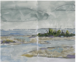 When we visited Maine, I sketched a lot of coastal views. My goal was to say as much as possible with as few marks as possible.